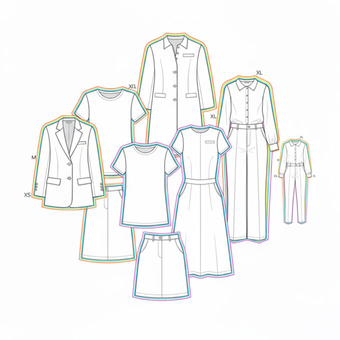 NewOrder olarak, hazırladığımız baz kalıpları, her ölçüde aynı estetiği ve rahatlığı sunacak şekilde dijital hassasiyetle ölçeklendiriyoruz.